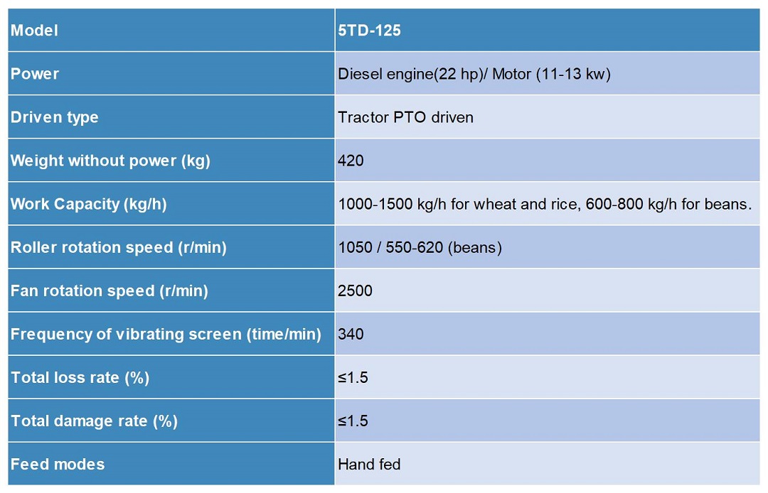 The grain thresher is mainly used for wheat, rice, sorghum, millet, corn and bean threshing. It is made up of ranks, concave screen, drum, cover, main fan, the second suction fan, motor (electric motor or diesel engine), vibrating screen, traction-driven device.
